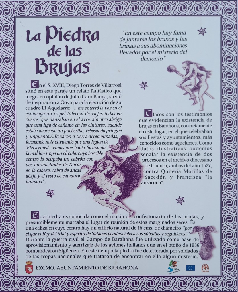 El pasado otoño nos acercamos hasta Soria, concretamente al pequeño pueblo de Barahona, más conocido como “Barahona de las Brujas”. Esta pequeña localidad casi limítrofe con la provincia de Guadalajara tiene fama por albergar una piedra “confesionario o mojón de las brujas” y por, junto a Zugarramurdi (Navarra) y Trasmoz(Zaragoza), contar tiempo atrás con una de las mayores agrupaciones brujeriles de la península, según aparece recogido por el Tribunal de la inquisición (1527-1530), en los archivos de Cuenca.