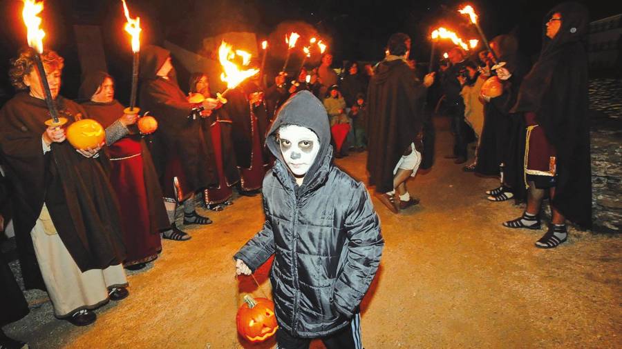 Los celtas dividían el año en dos partes (la de la luz y la de la oscuridad), con el comienzo de la estación de las sombras, (coincidente con los días intermedios equinoccio de otoño y el solsticio de invierno, porque estos pueblos además, tenían conocimientos astronómicos), se recogían las últimas cosechas y se hacía la matanza de los animales que se habían estado cebando durante el verano, igual que sucede con otra tradición prerromana arraigada en la península, la matanza del cerdo, que se lleva a cabo todavía en algunos pueblos el día 11 de noviembre día de San Martín, quien no ha escuchado alguna vez ¿a cada cerdo le llega su san Martín? Se creía que la noche de difuntos se abría una puerta entre el mundo de los vivos y el de los muertos donde, regresaban los antepasados (a estos se les ofrecían presentes) y también era el momento donde los espíritus de la oscuridad y la naturaleza hacían acto de presencia (para ahuyentarles y honrarles se encendían velas, se hacían hogueras…).
